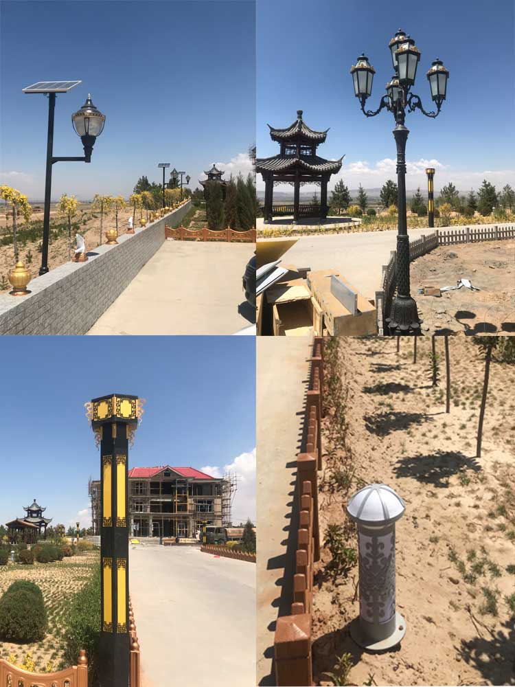 簡介—— 寧夏吳忠市同心縣景觀燈、庭院燈、草坪燈系列項目,是我公司與2018年5月完成的具有當?shù)仫L(fēng)格的特色燈具,我們提供給客戶的這批產(chǎn)品都是都是根據(jù)客戶的需求,安裝公司圖冊進行生產(chǎn)的,每款燈都有特色,全部安裝的是市電庭院燈、景觀燈、草坪燈。