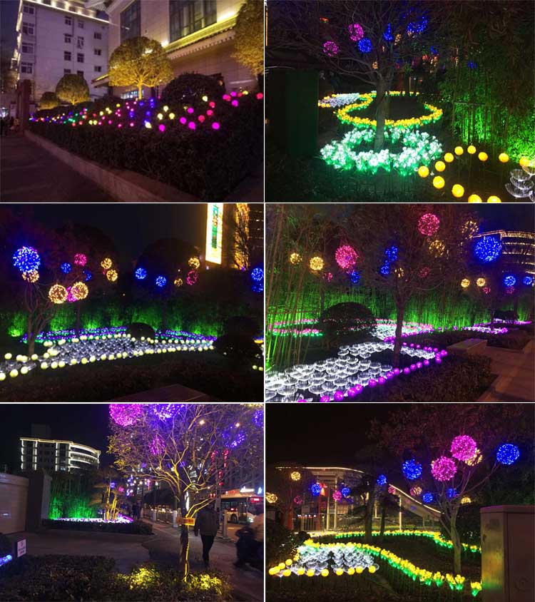 簡介—— 西安蓮湖區2019年元旦、春節亮化工程。項目包括鐘鼓樓燈光花籃雕塑,郵政廣場亮化、北大街主干道的亮化。采用了麥穗插地燈、郁金香插地燈、芙蓉花插地燈、小品燈球、串燈等多款造型燈具,共同打造出北大街沿線的夜景風光。